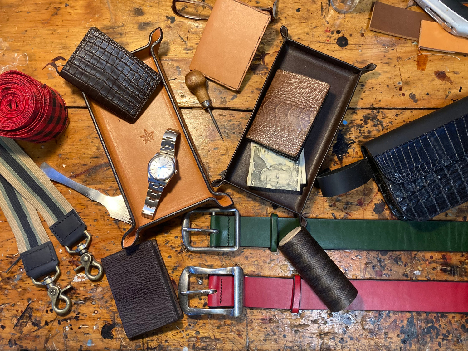 Every JXF Leatherworks valet tray is hand formed from a select collection...