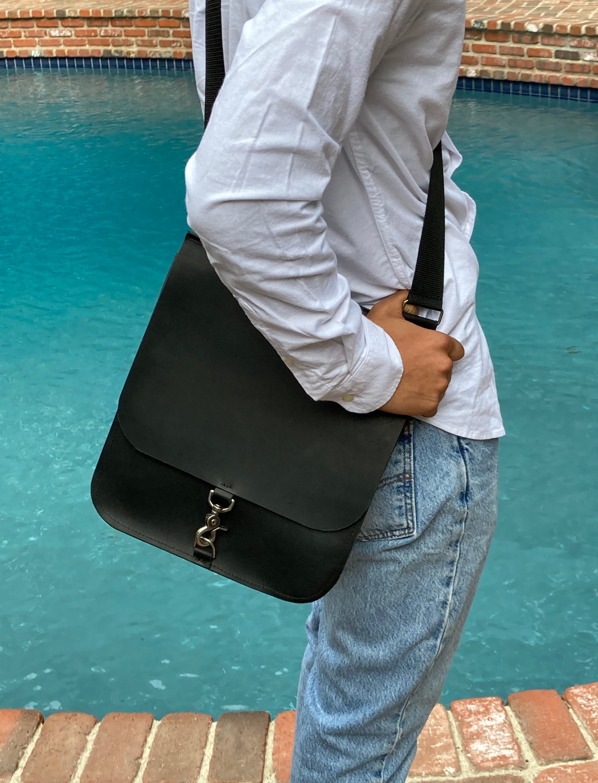 Pebbled Black Leather Messenger Bag